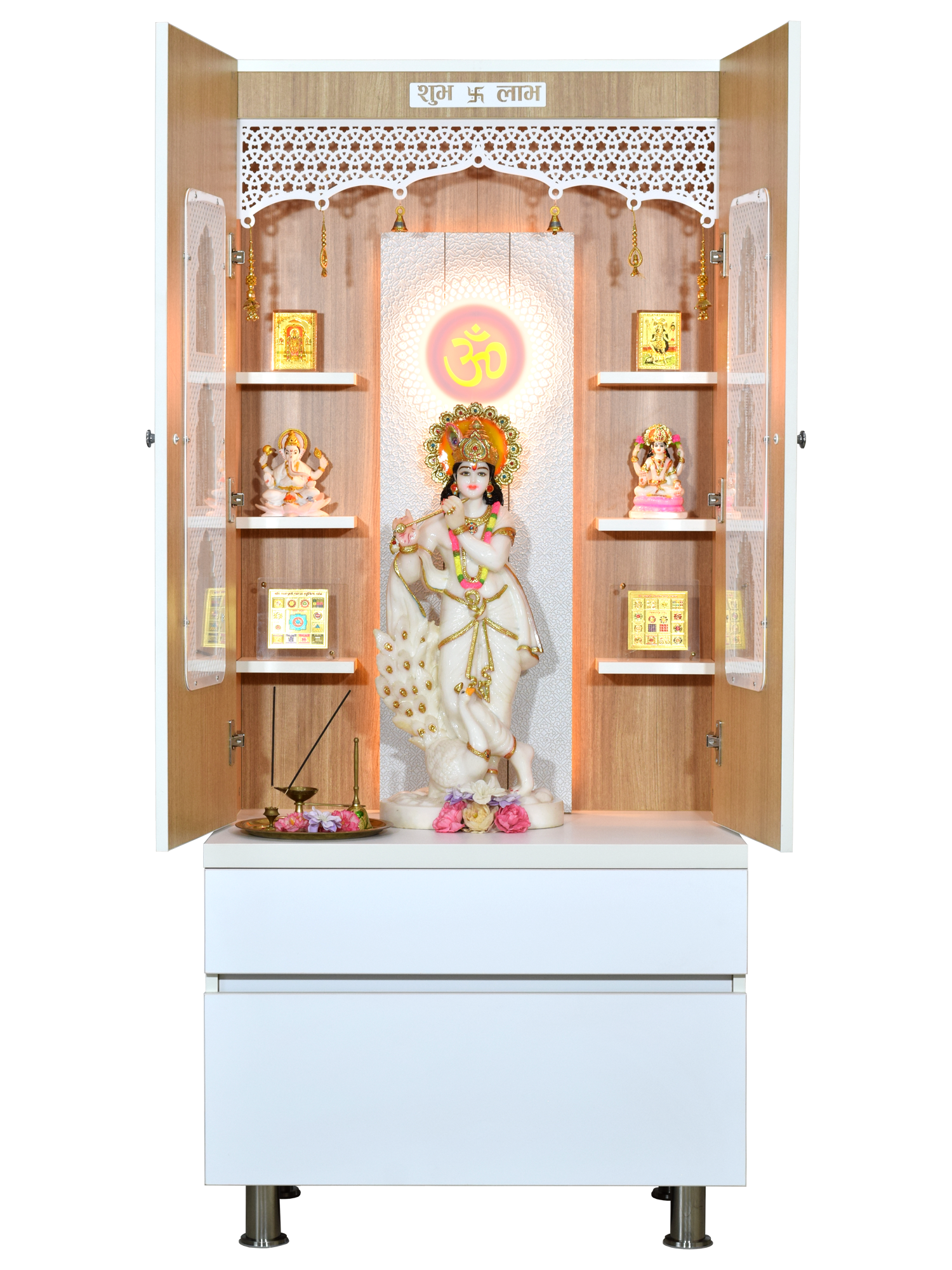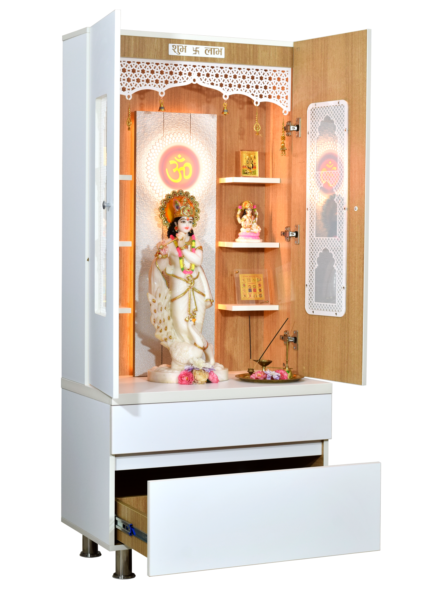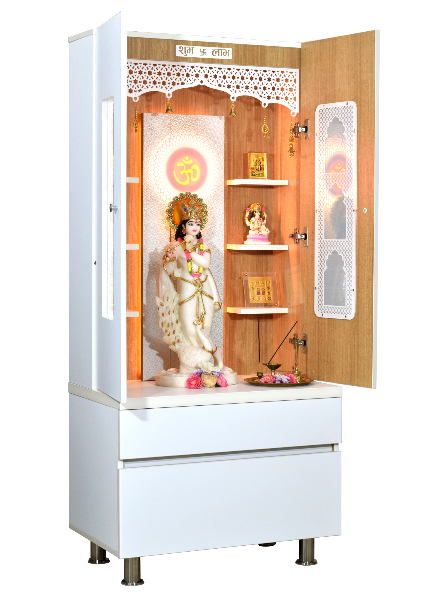 • High illumination LED lighting - Powered with energy-efficient lights that beautifully illuminate your deities and create a divine atmosphere in your home or office