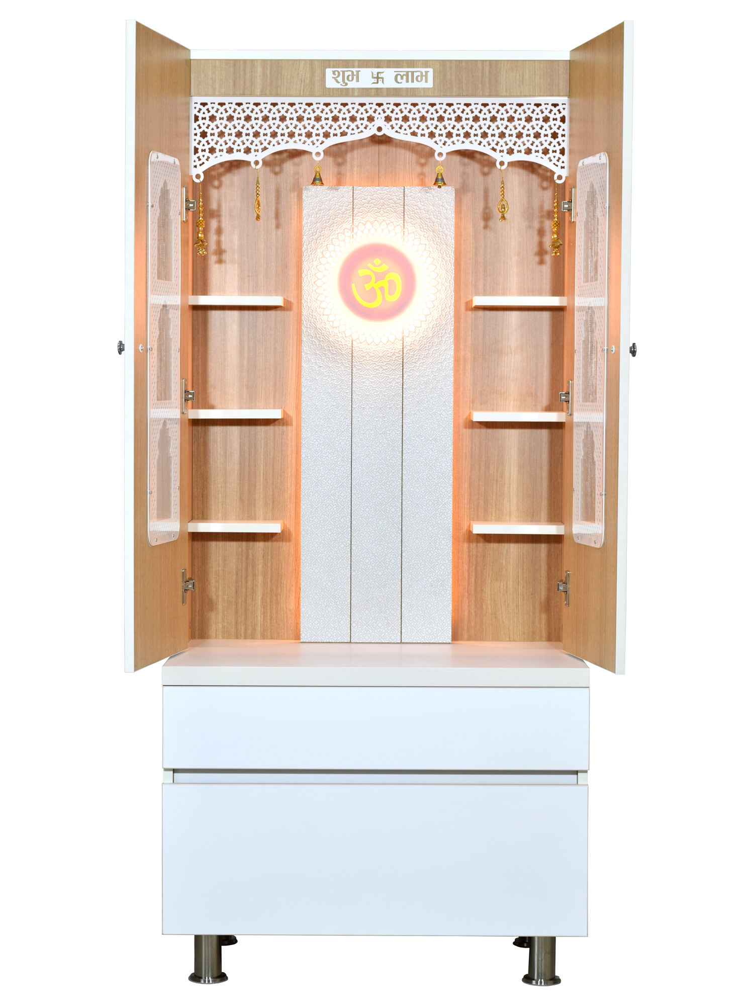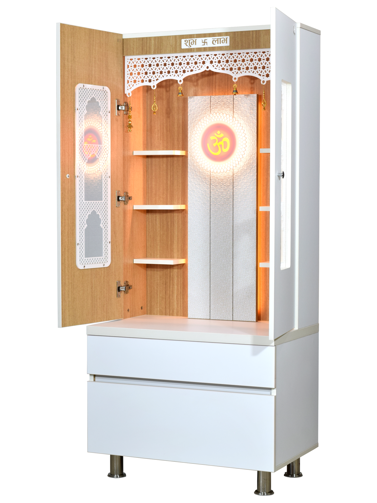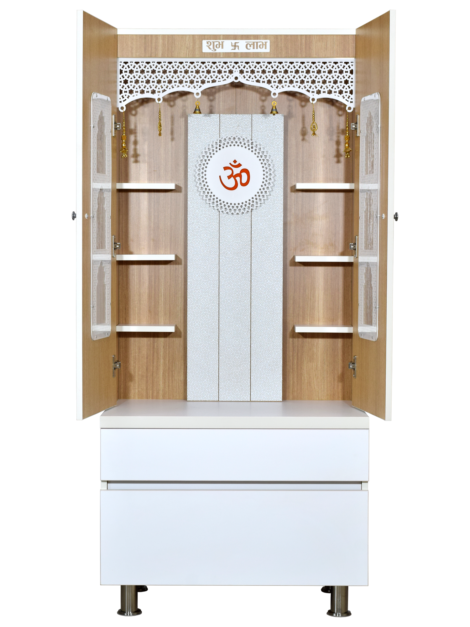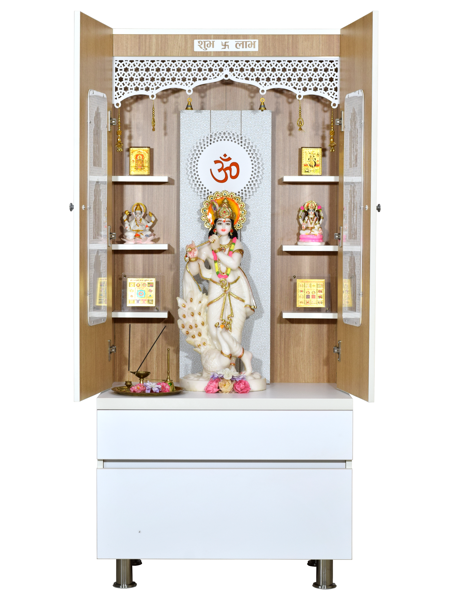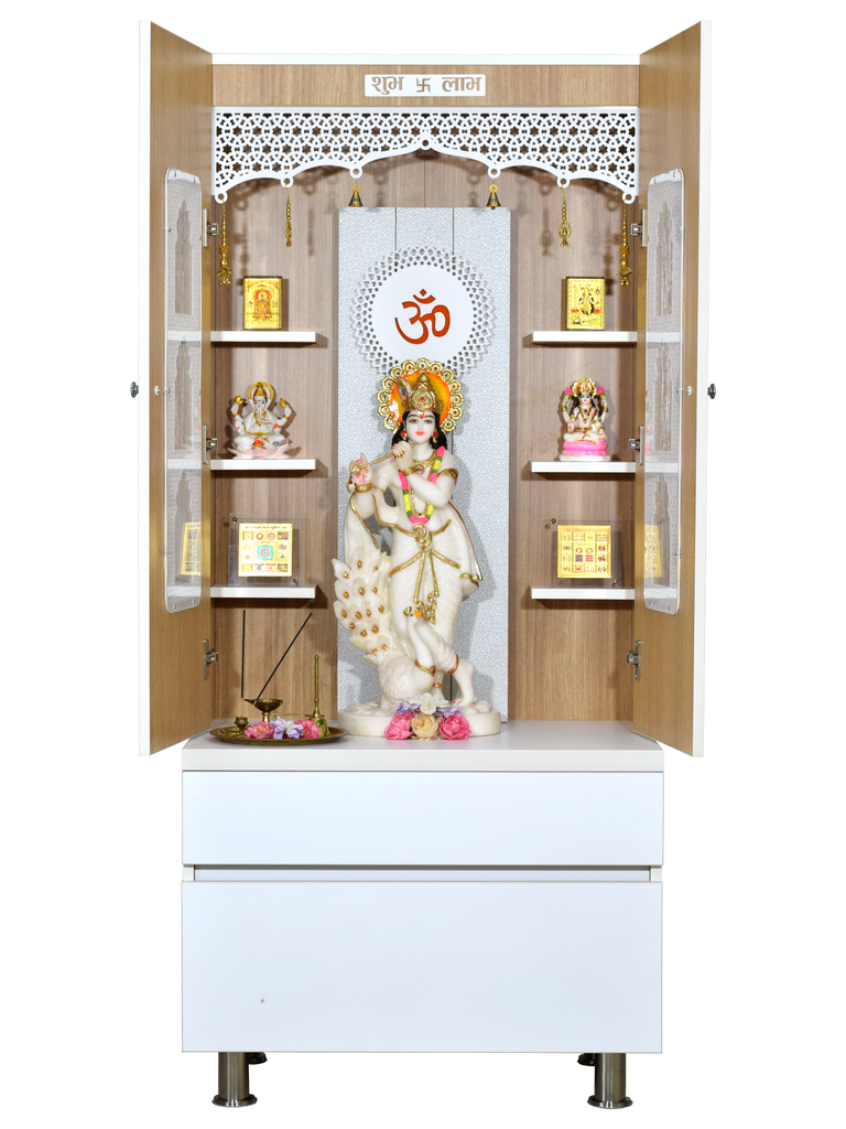 • Enclosed design with doors - Protect your sacred idols when not in use while maintaining the beauty of your pooja space