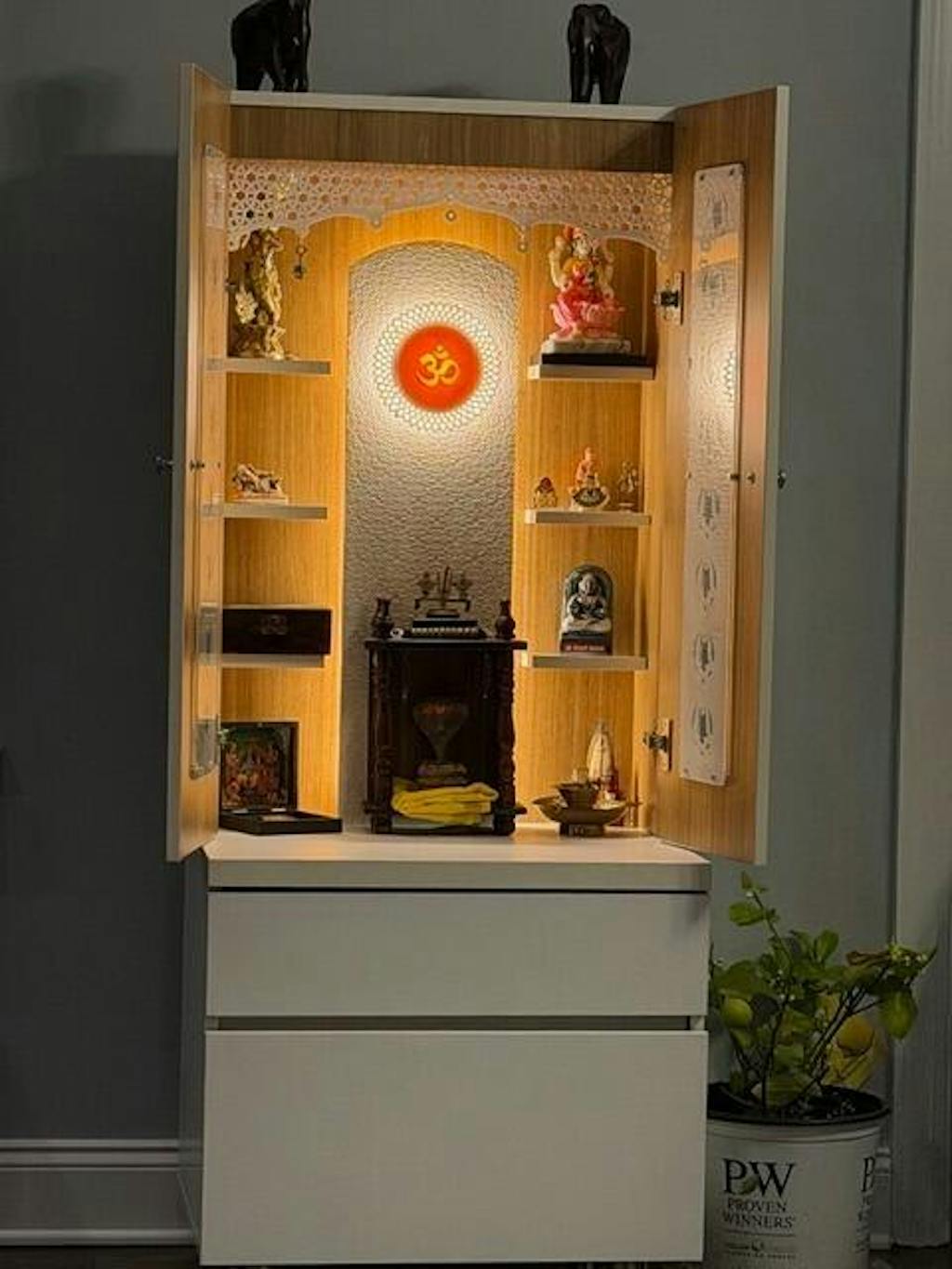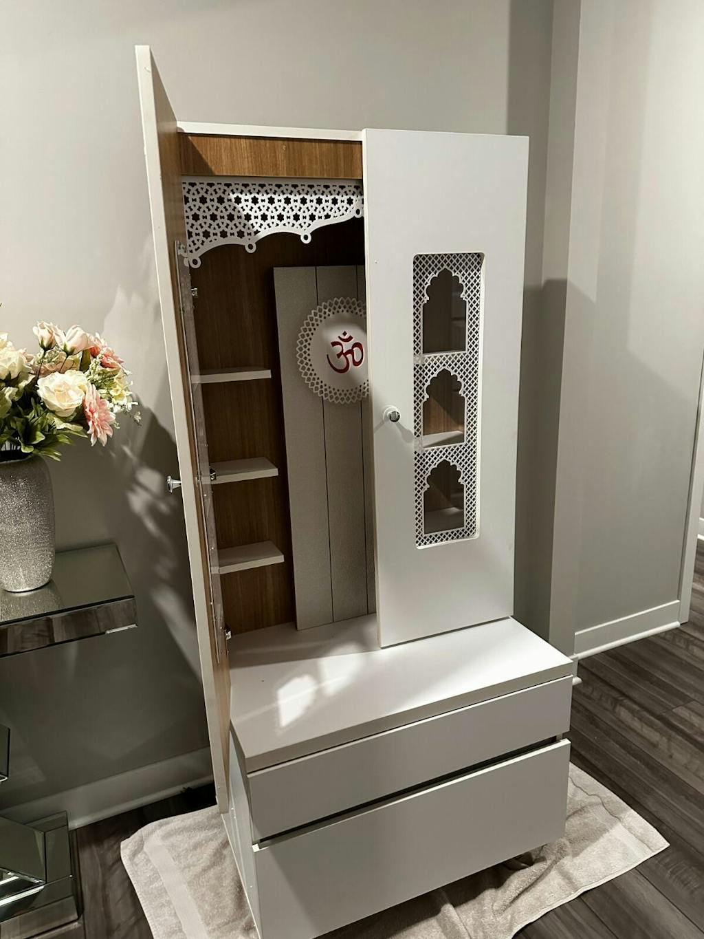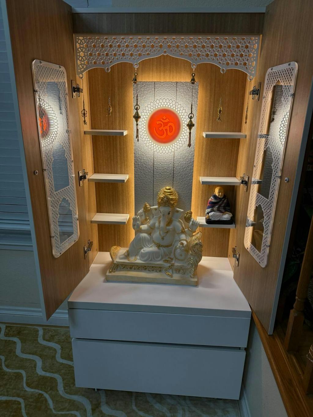• Enclosed design with doors - Protect your sacred idols when not in use while maintaining the beauty of your pooja space