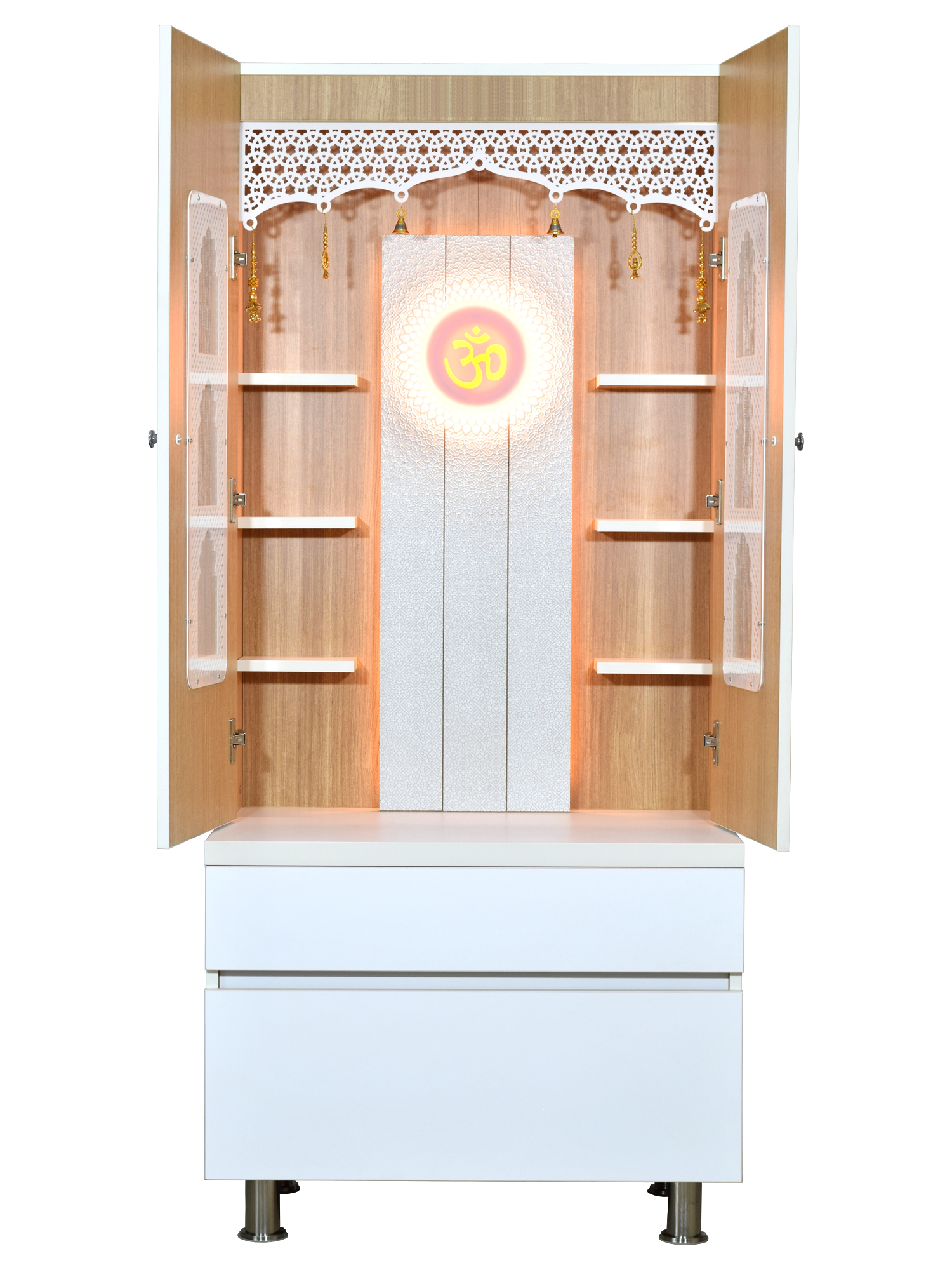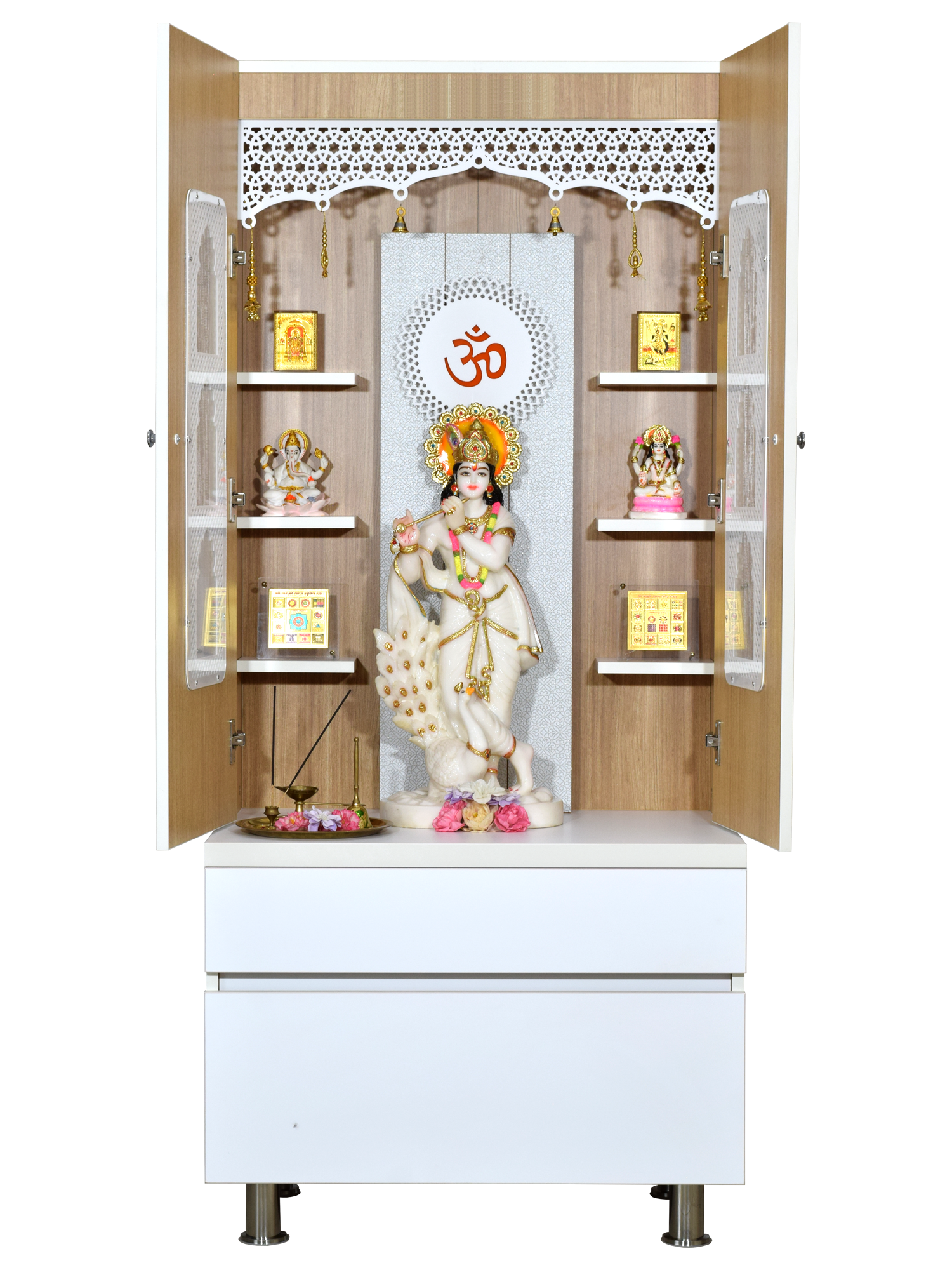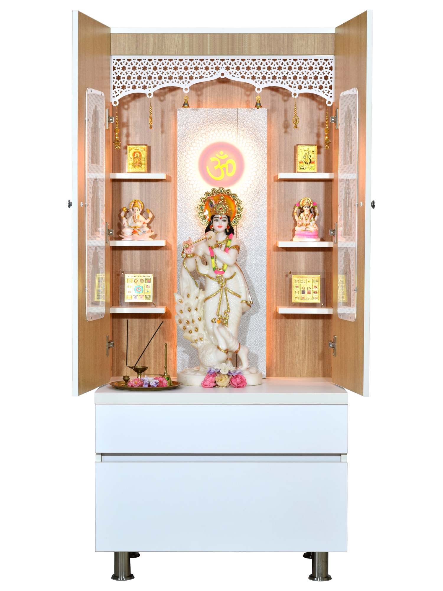 5.5' x 2.5' Premium White Finish Mandir with doors