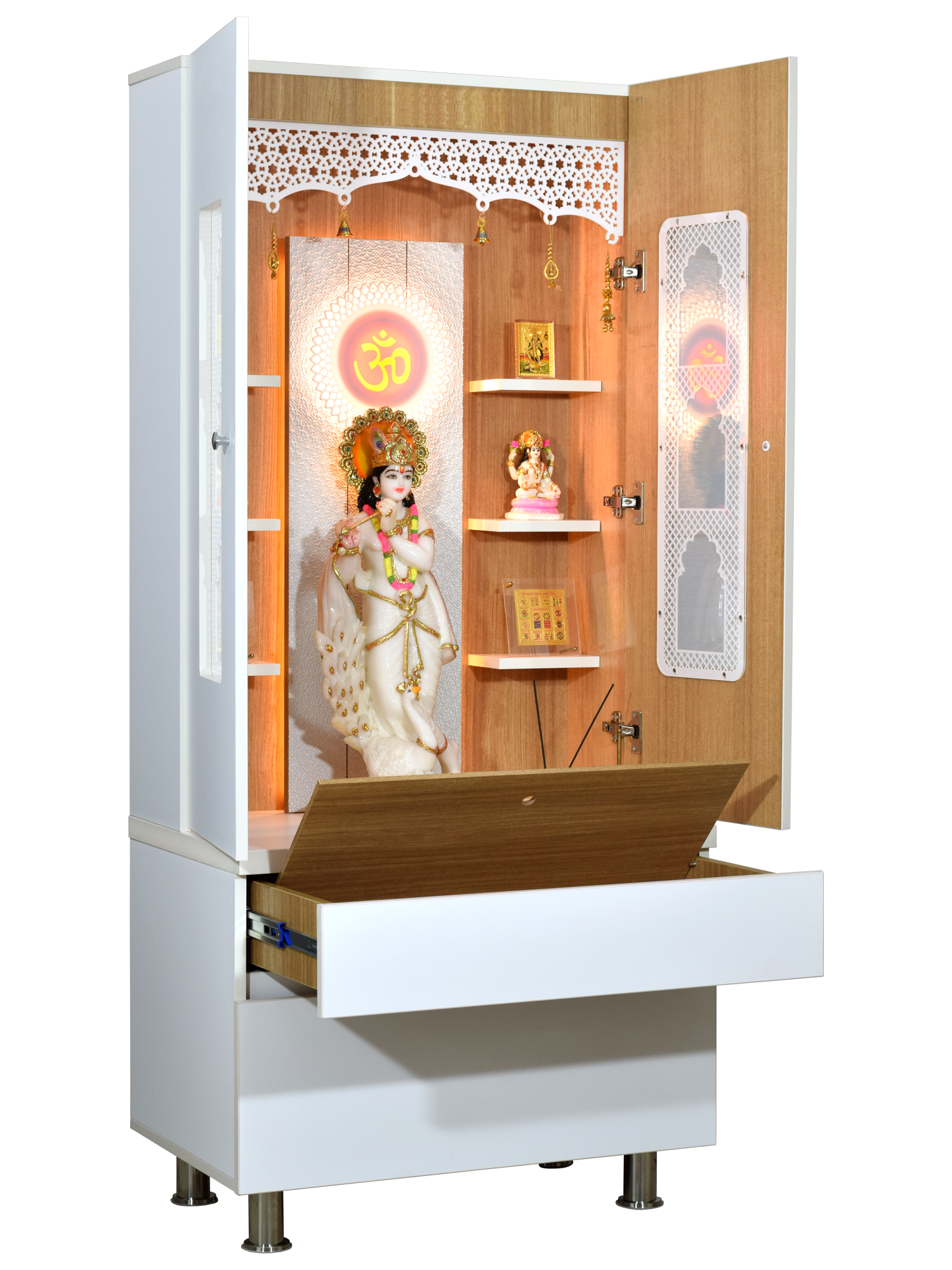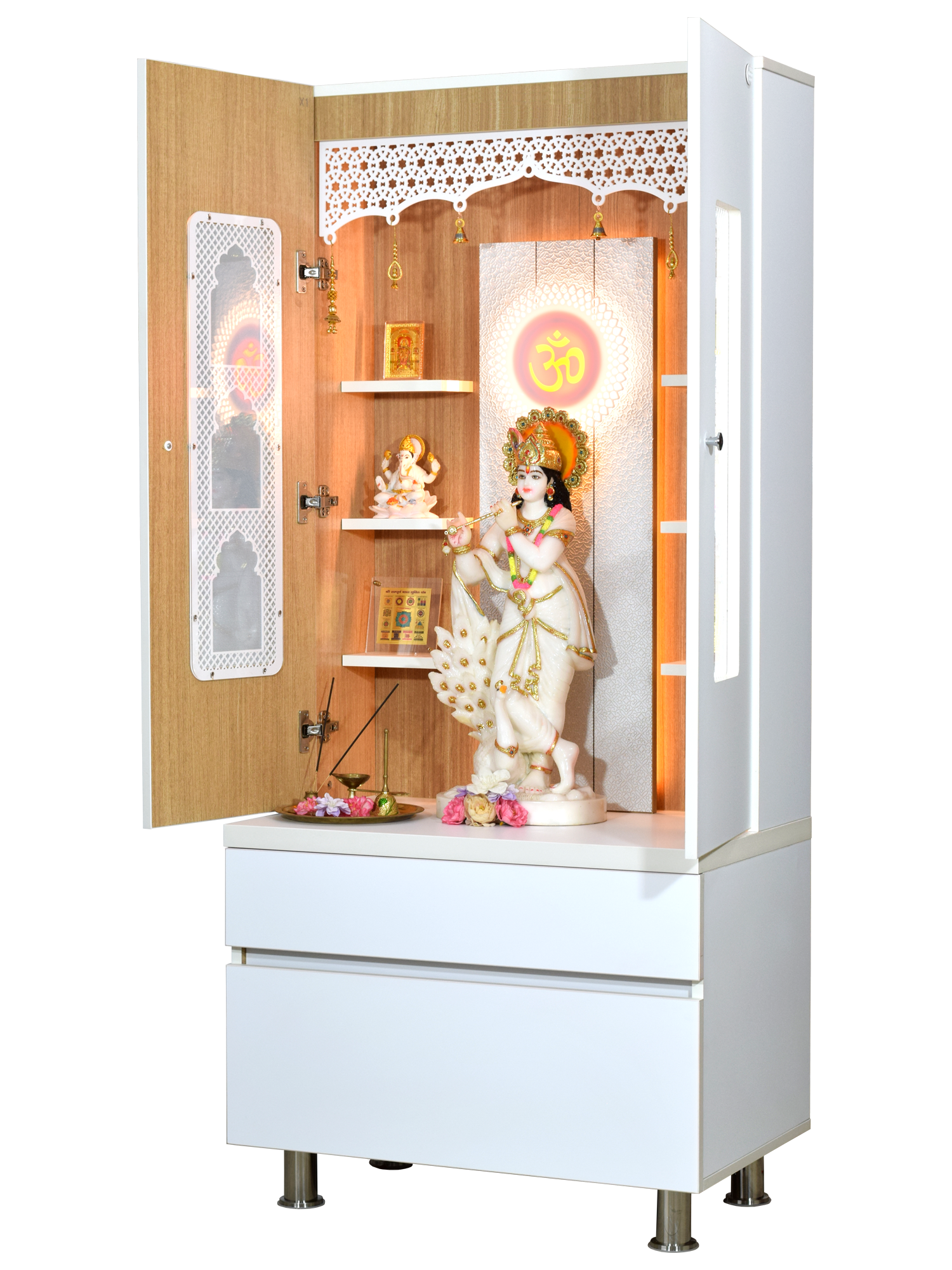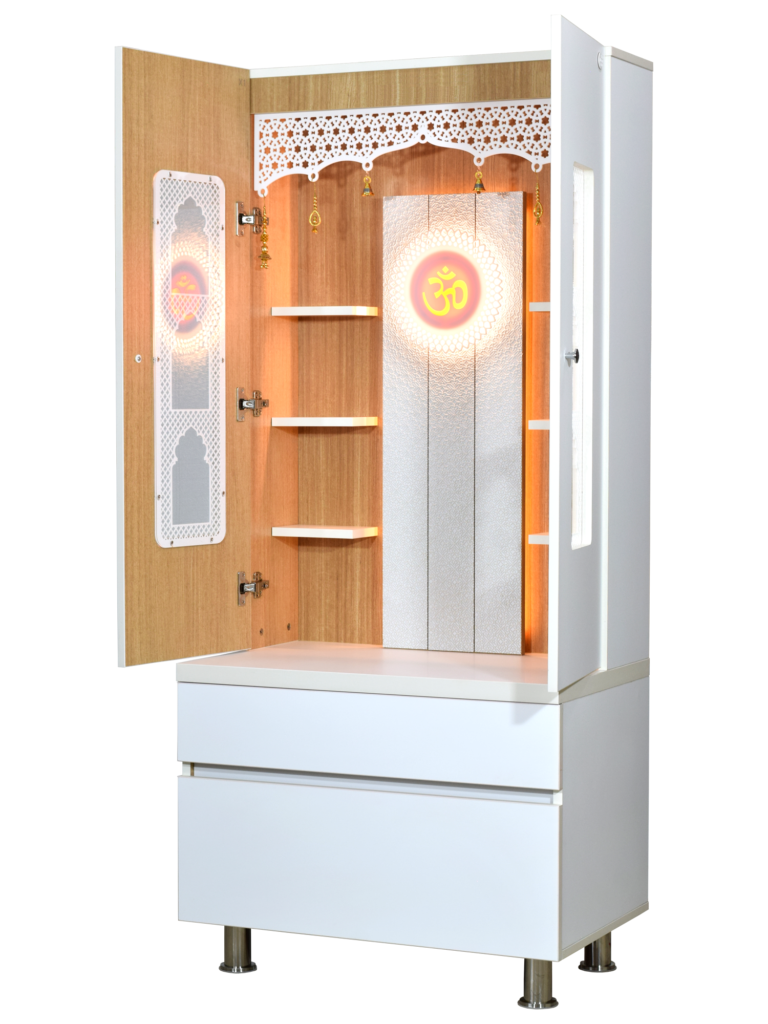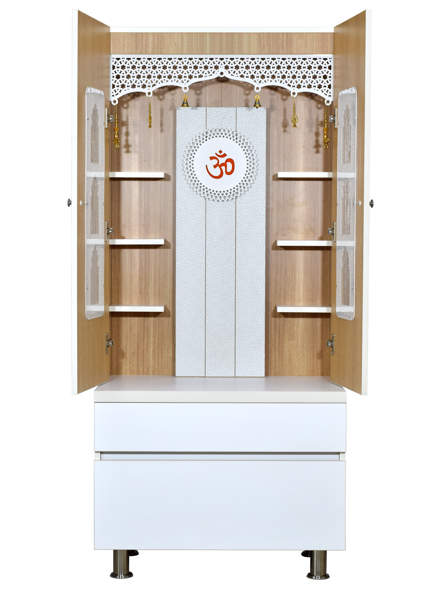 5.5' x 2.5' Premium White Finish Mandir with doors