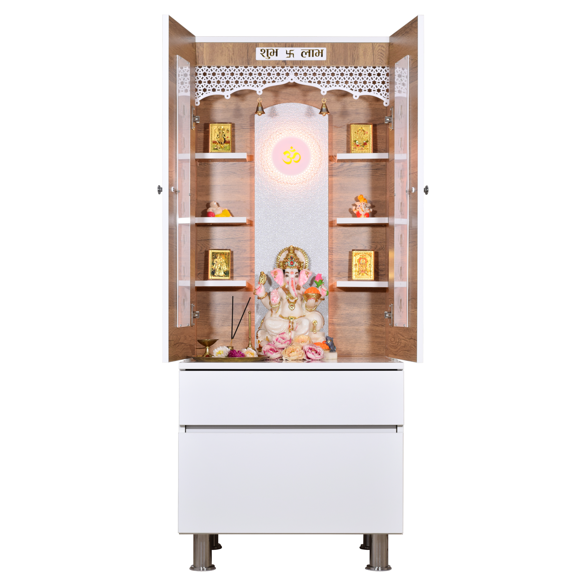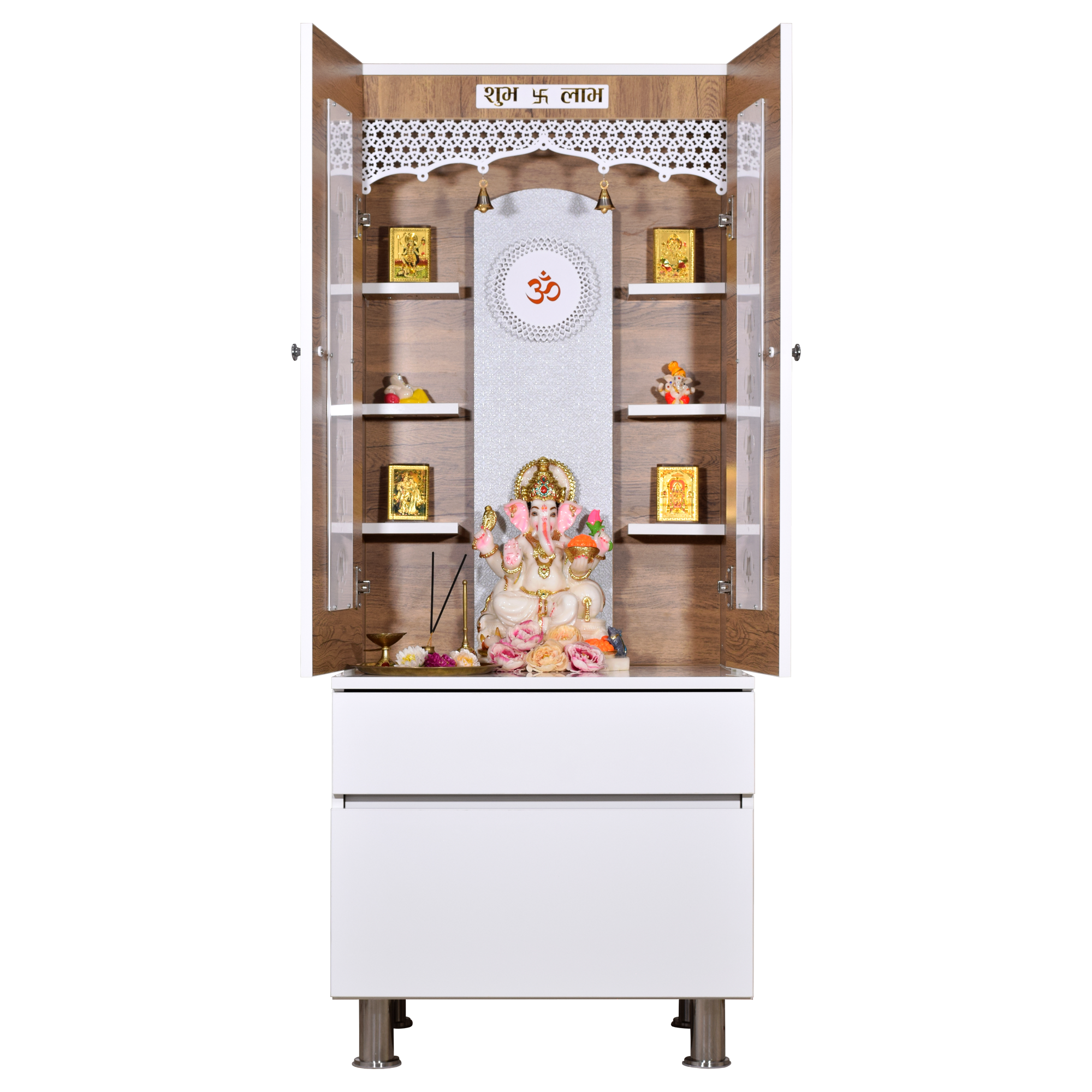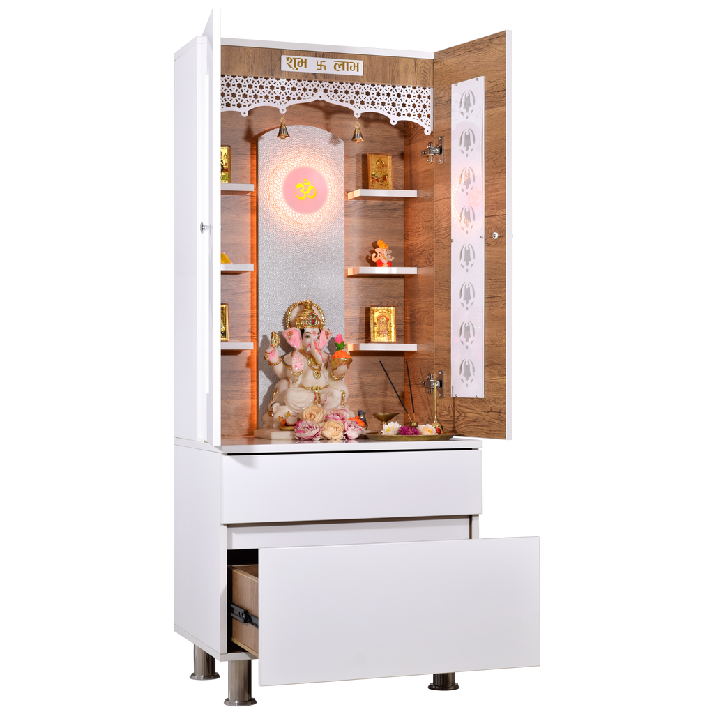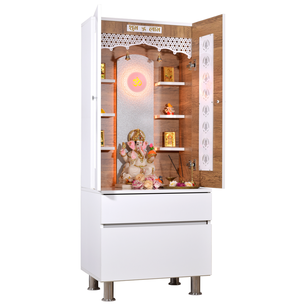 • Enclosed design with doors - Protect your sacred idols when not in use while maintaining the beauty of your pooja space