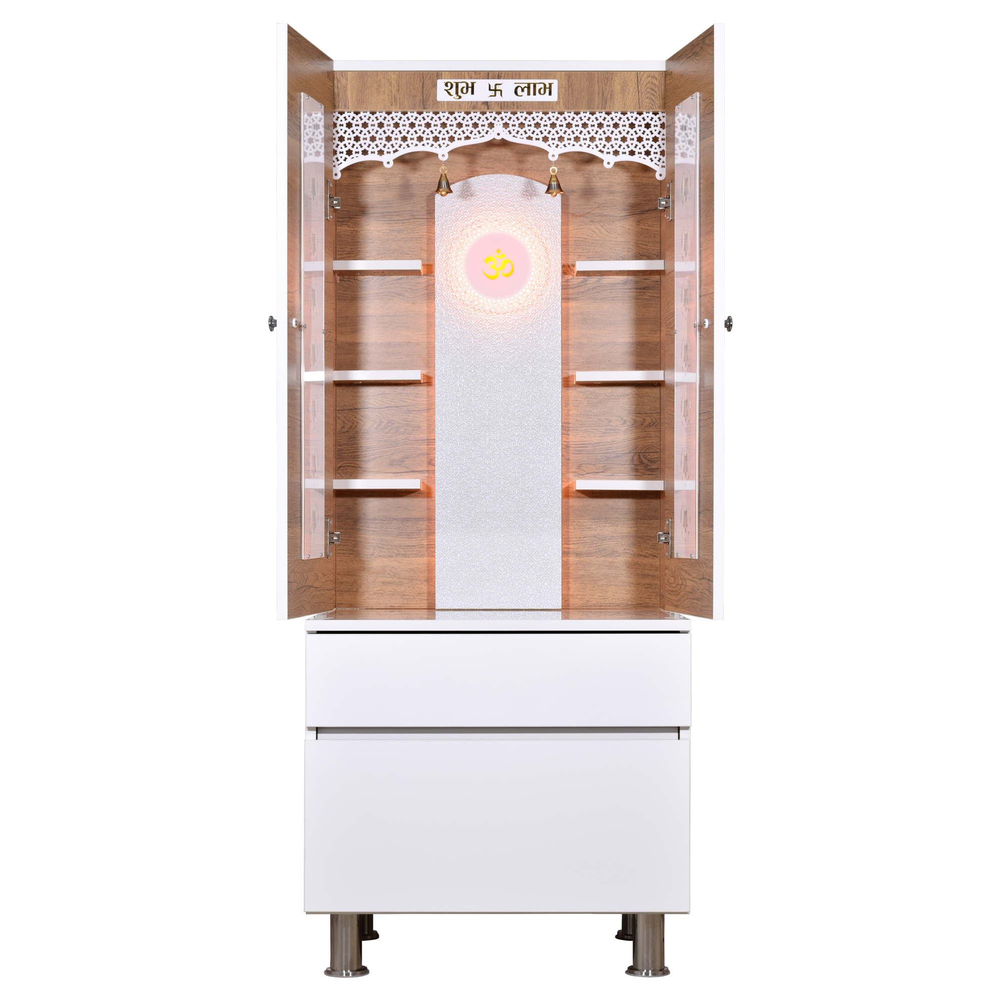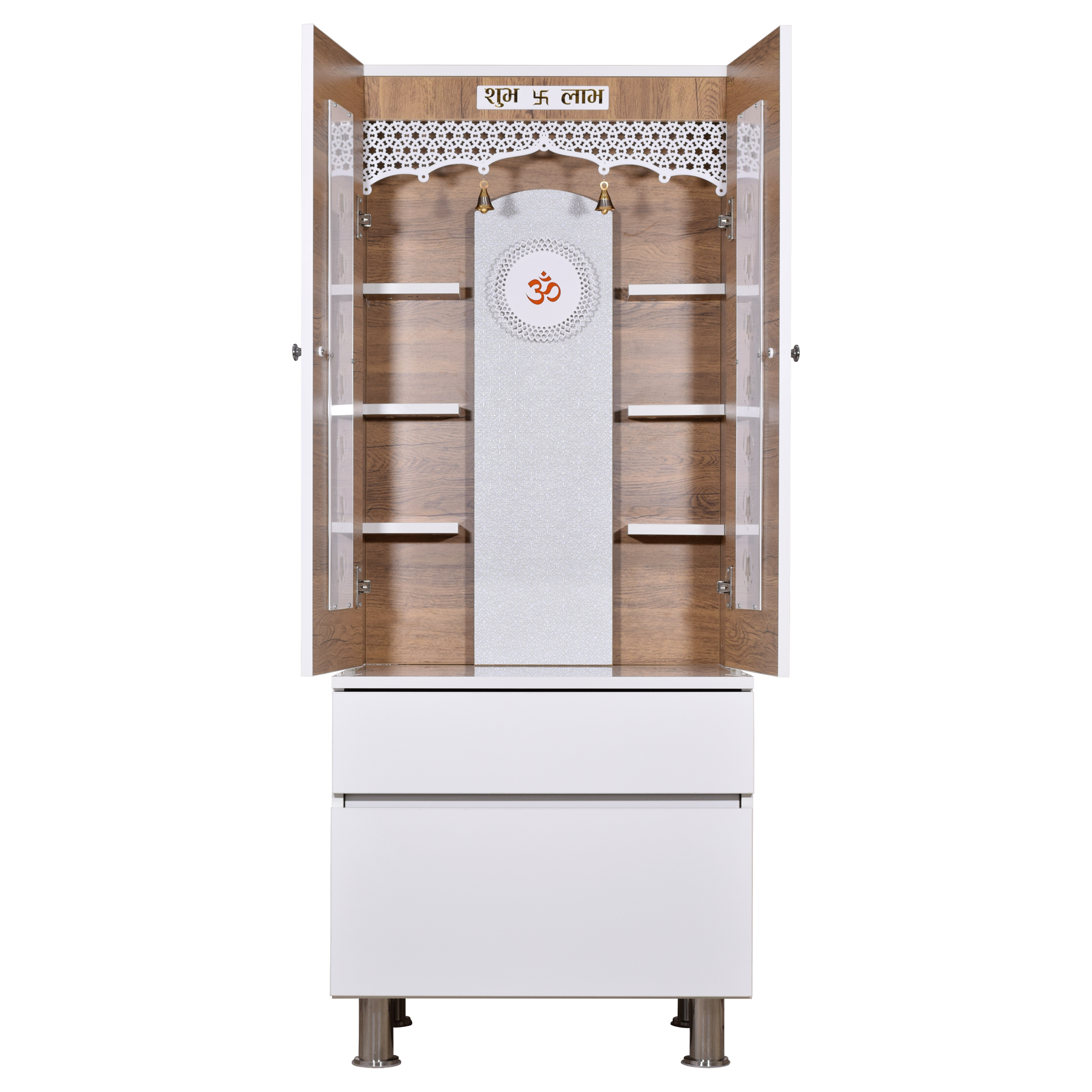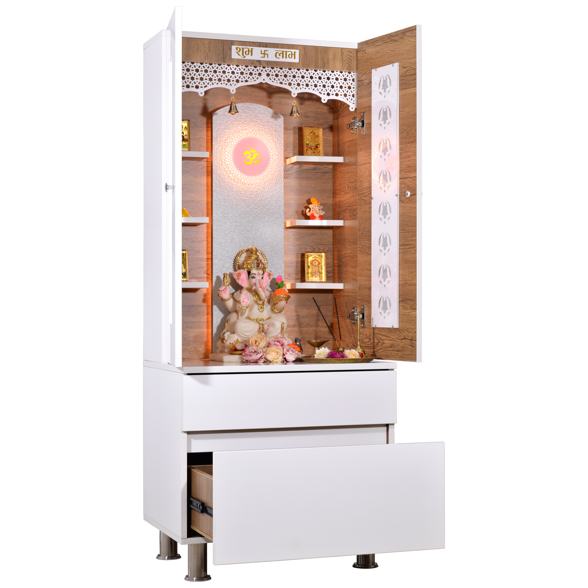 • Enclosed design with doors - Protect your sacred idols when not in use while maintaining the beauty of your pooja space