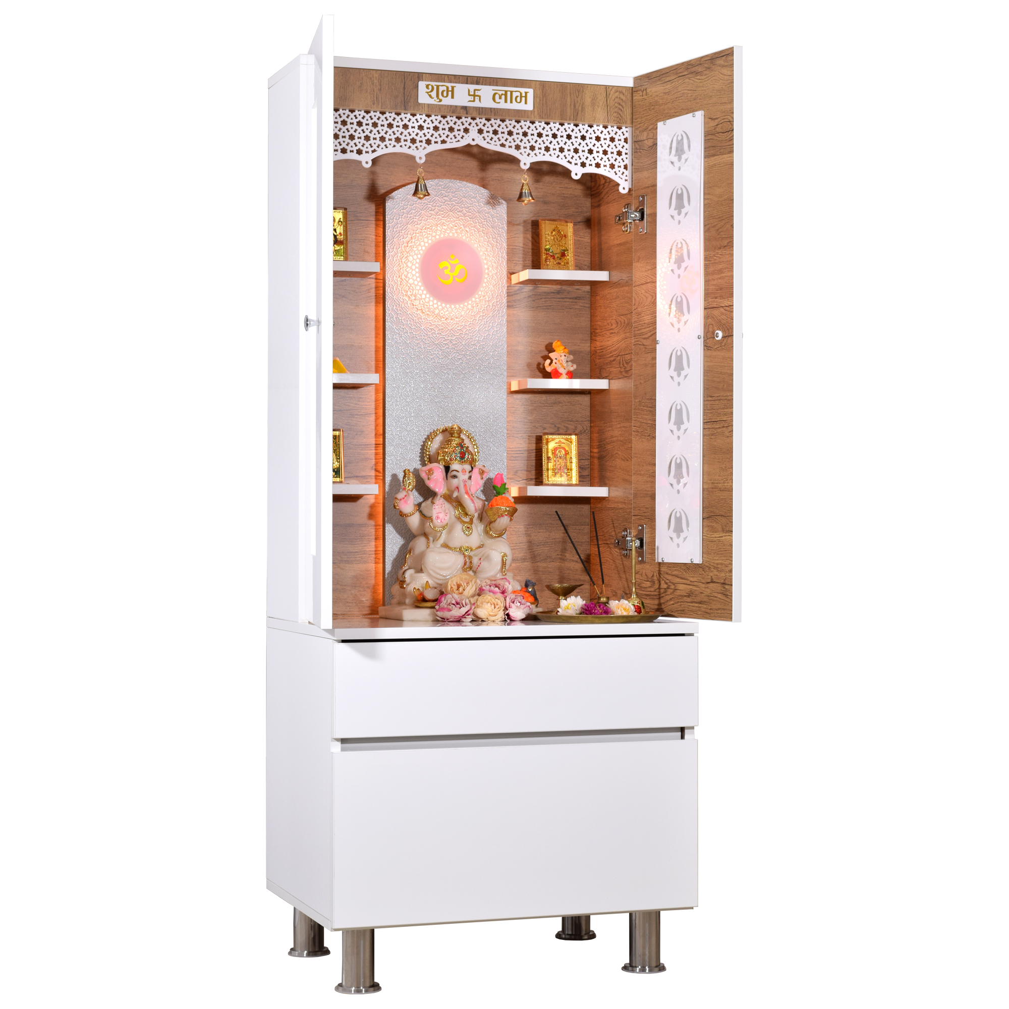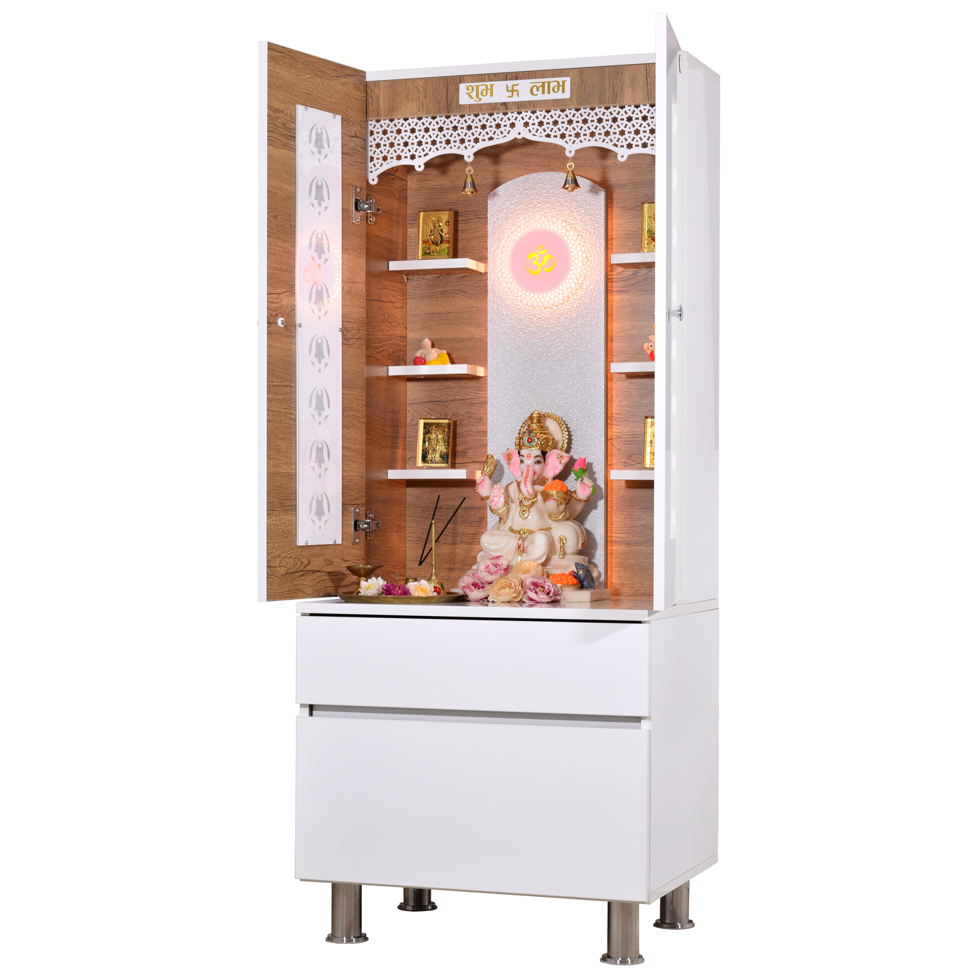 • High illumination LED lighting - Powered with energy-efficient lights that beautifully illuminate your deities and create a divine atmosphere in your home or office